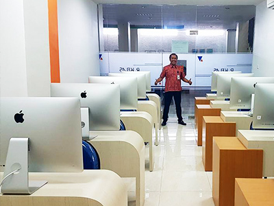 Ruang kelas di kampus Institut Teknologi dan Bisnis Indonesia elegan dan menggunakan konsep jaman now.